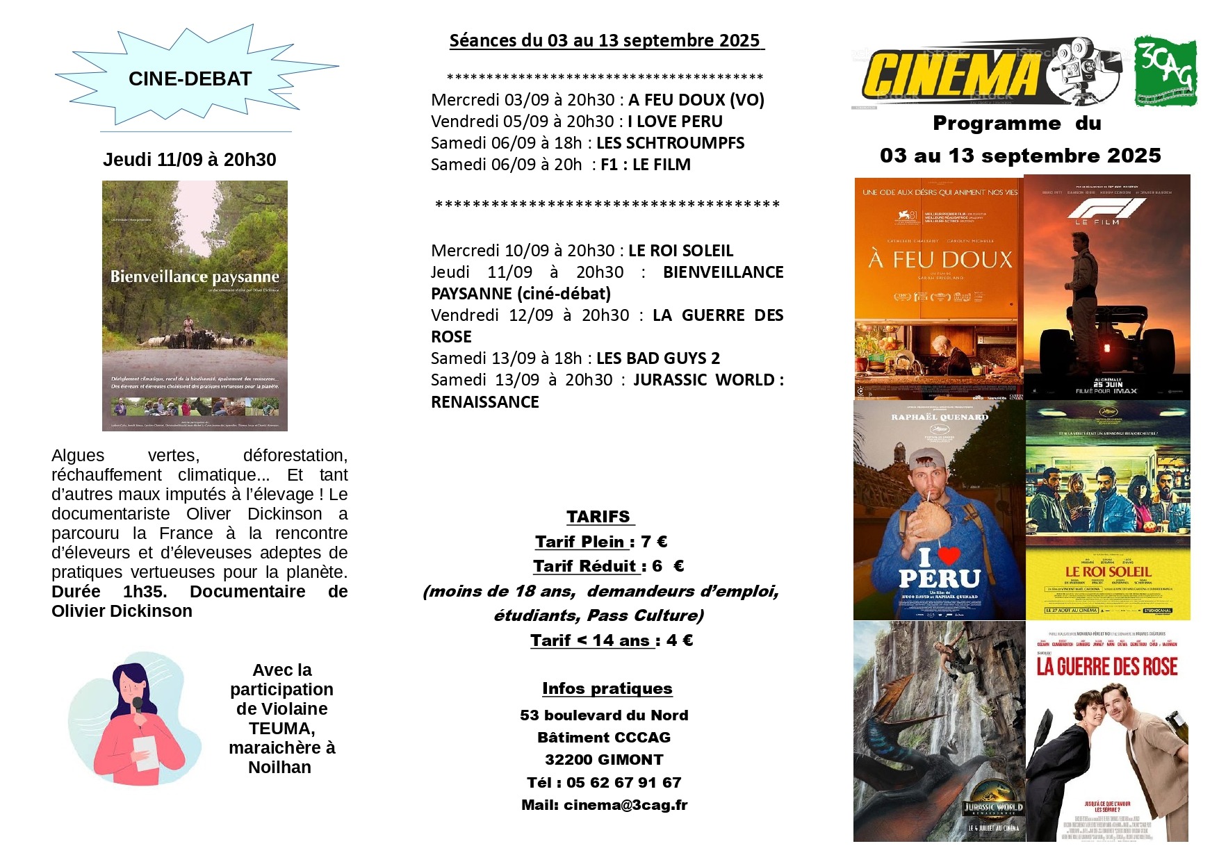 Le cinéma intercommunal de la 3CAG vous propose des séances les mardis, vendredis et samedis soirs.